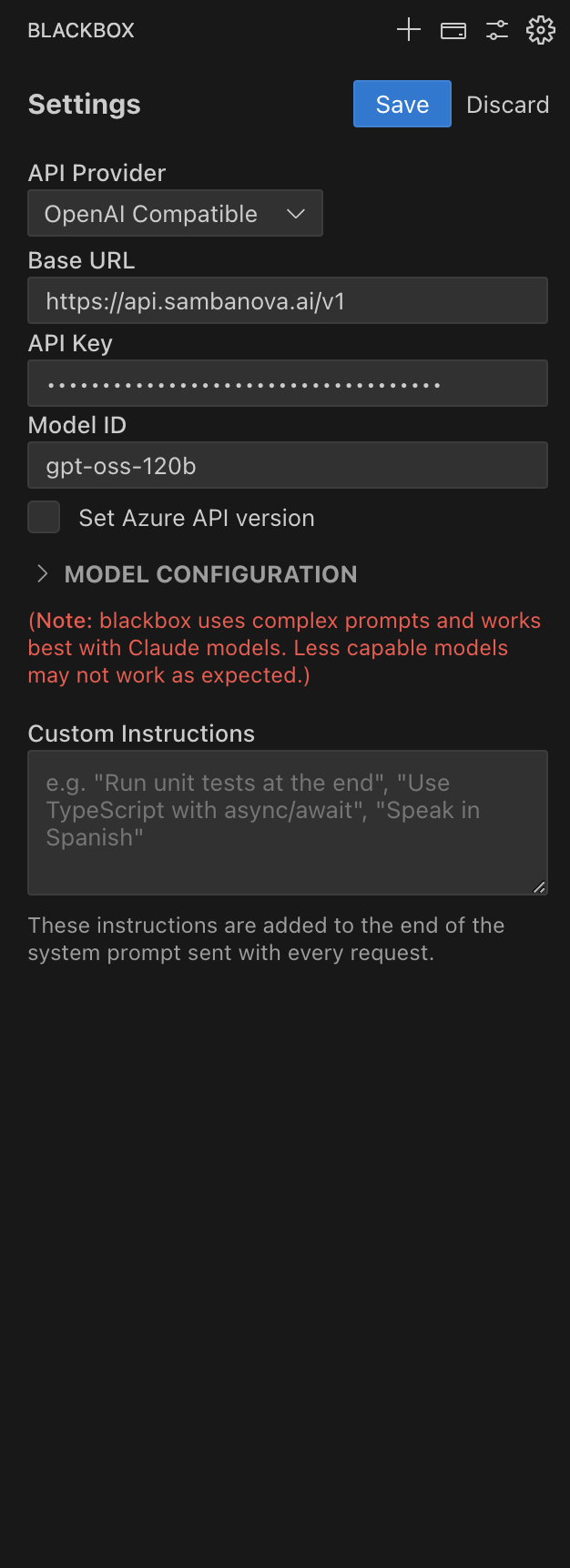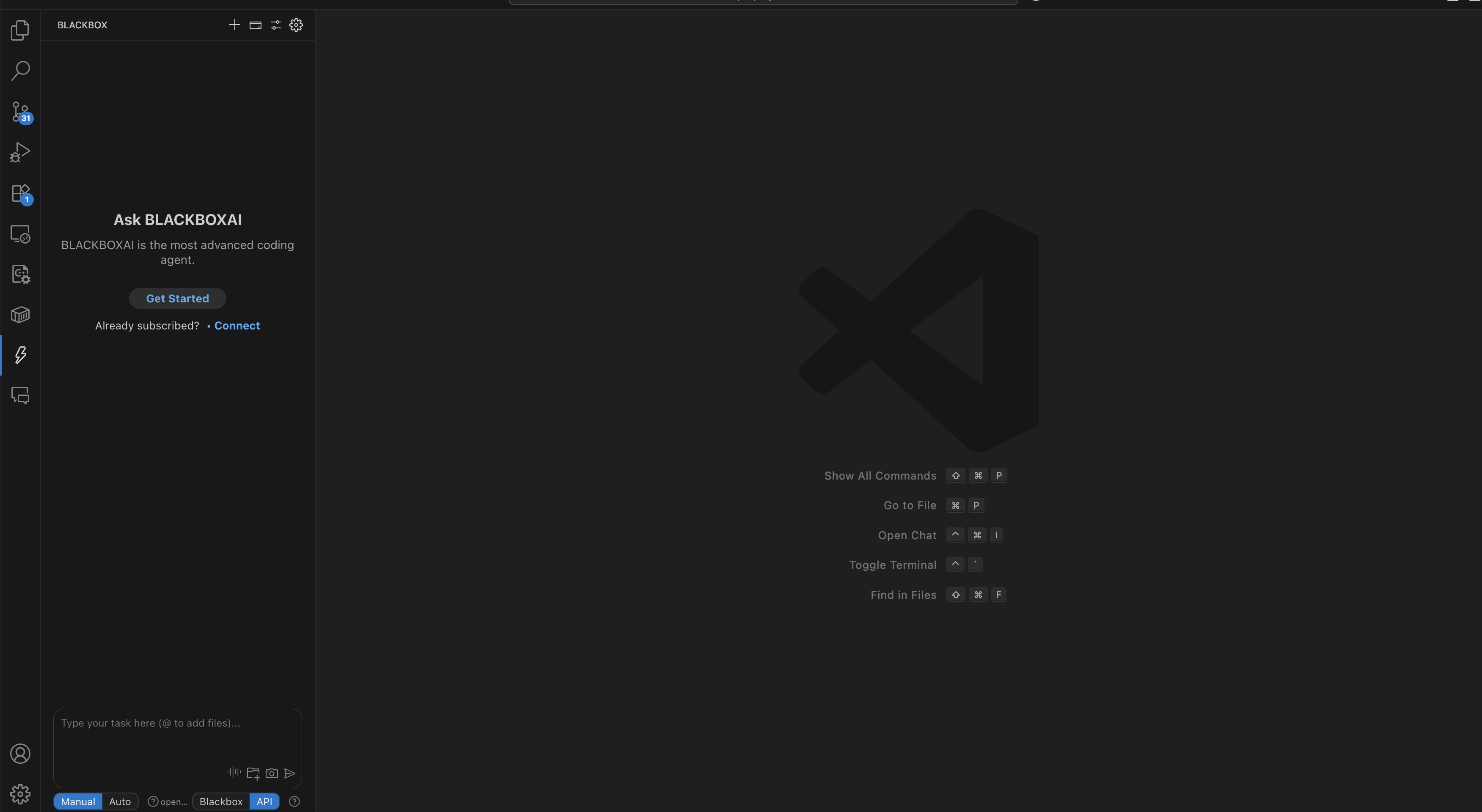 Connecting SambaNova’s LLMs to BlackBoxAI is quick and straightforward. Follow the steps below:- Open BlackBoxAI in VS Code.