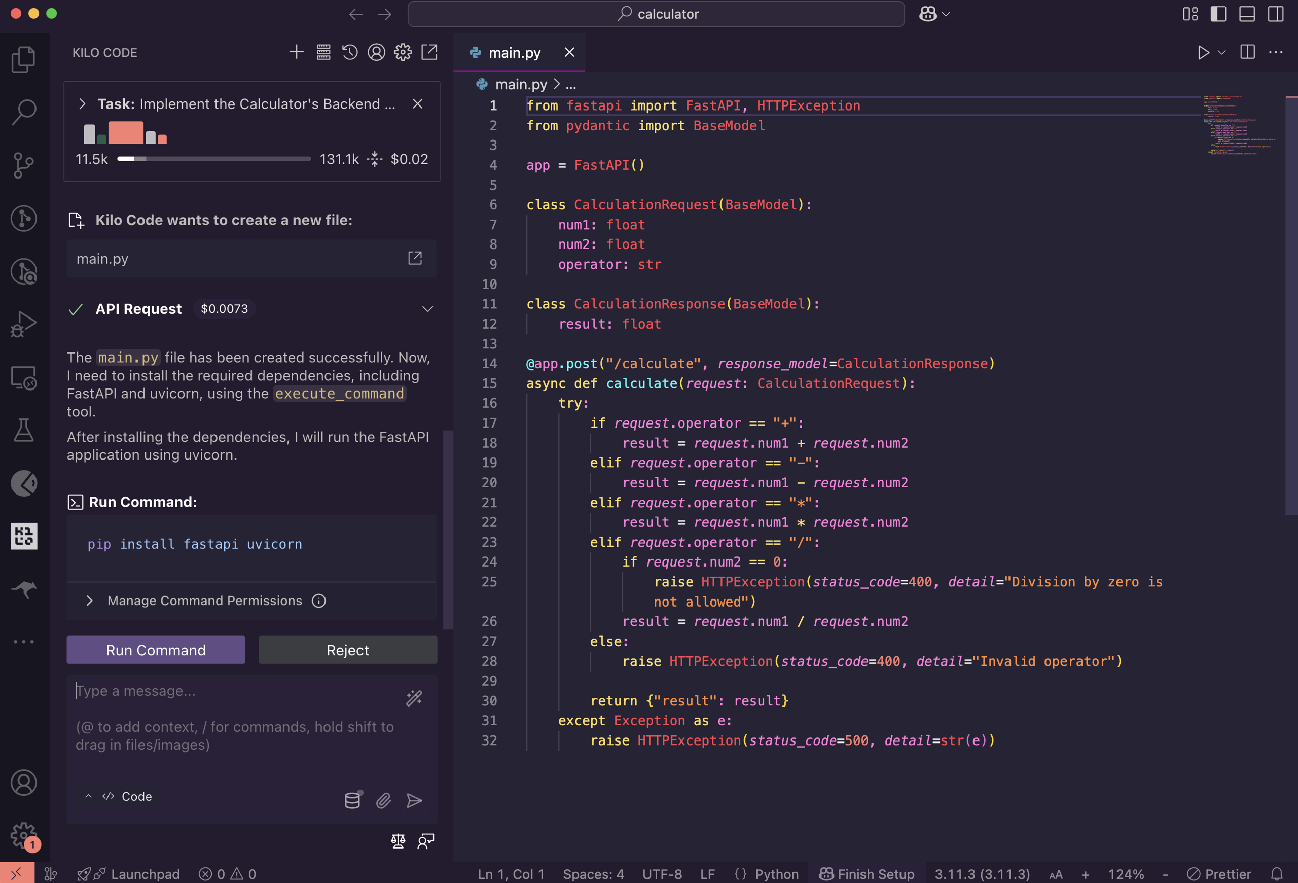- Approve the actions you want KiloCode to execute.